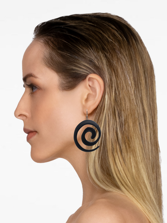 Handcrafted Ebony Wood Swirl Earrings on .925 Sterling Wire