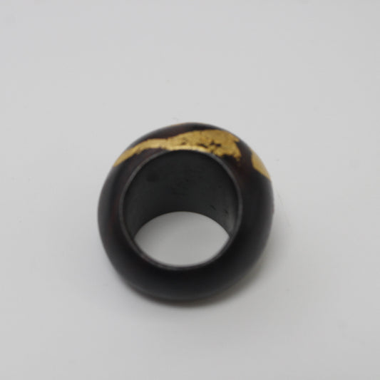 Handcrafted Ebony Wood Swirl Ring 24k Gold Leafing Mali