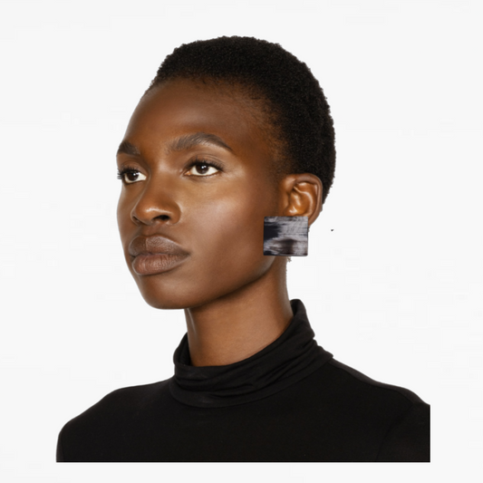 Handcrafted Large Square Retro Button Curved Cattle Horn Earrings Earrings