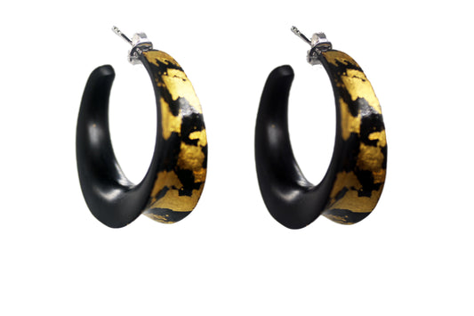 Handcrafted Ebony Concave Hoop Earrings with 24k Gold Leafing