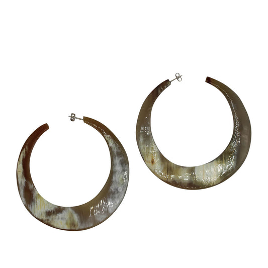 Handcrafted Oversized Watusi Cattle Horn Hoop Earrings - 90MM