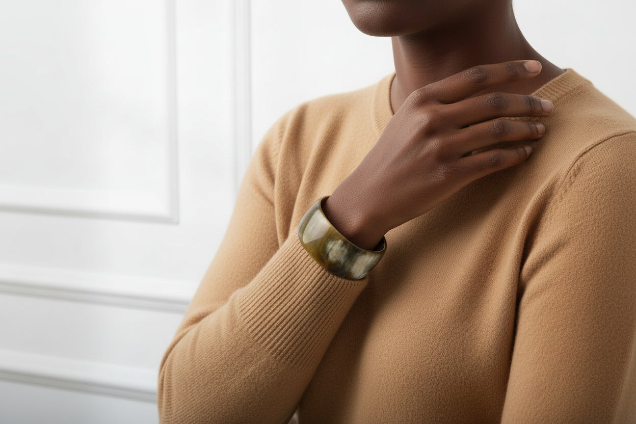 Hand‑carved, ethically sourced, and naturally one‑of‑a‑kind. Discover sculptural bangles with timeless, sustainable beauty.