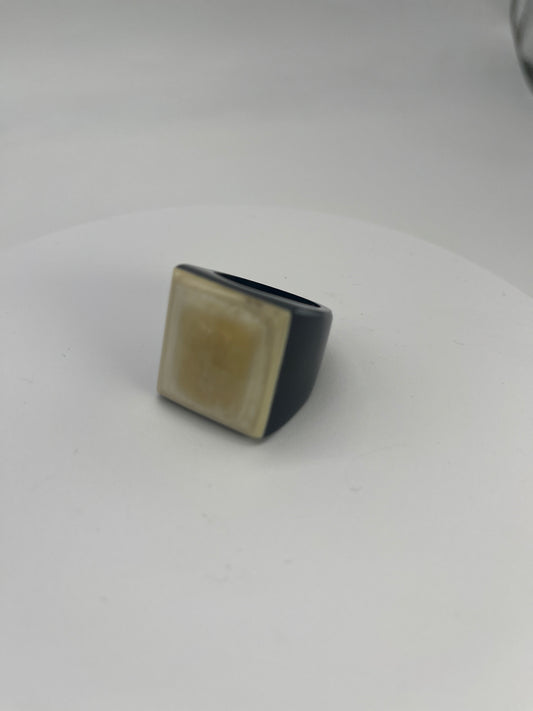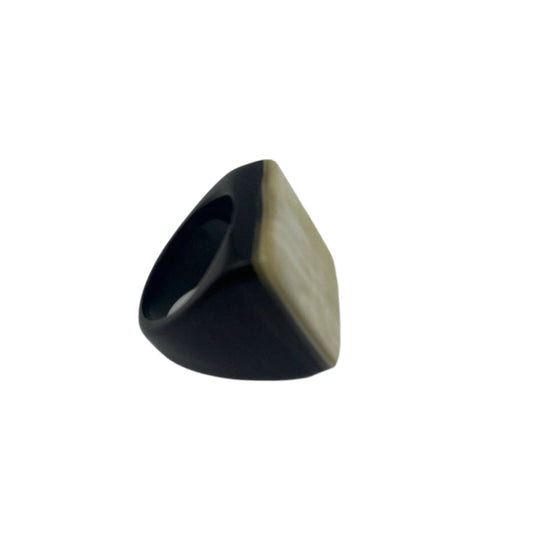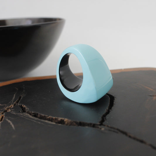Black Buffalo Horn Ring Painted Blue Lacquer