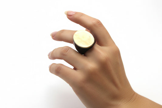 Handcrafted buffalo horn large oval two tone ring